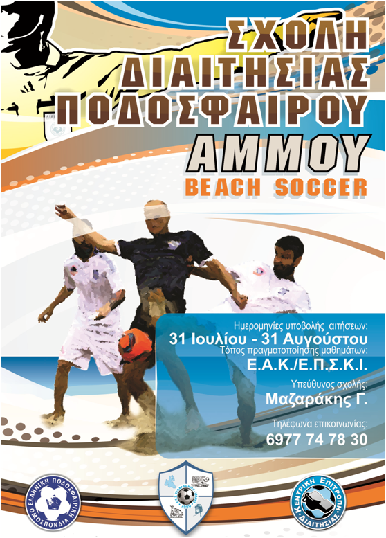 Με απόφαση της ΚΕΔ/ΕΠΟ θα πραγματοποιηθεί ταχύρρυθμη σχολή διαιτησίας ποδοσφαίρου άμμου , η οποία θα διεξαχθεί στις 6 & 7 Σεπτεμβρίου 2017 στο Ενωσιακό Γήπεδο Ε.Α.Κ./Ε.Π.Σ.Κ.Ι.